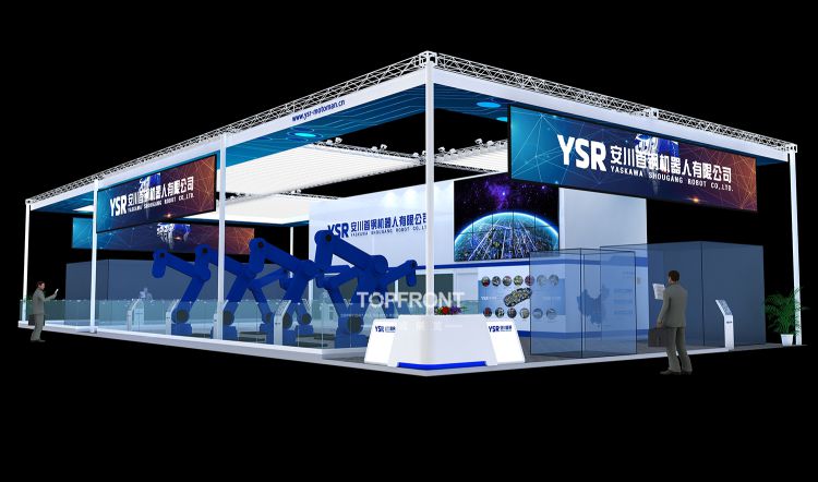 本项目为安川首钢参加上海工业展会打造专业展示空间,我们承接的上海机器人展台搭建项目,围绕客户工业机器人产品展示核心需求,以科技感设计语言适配客户高端品牌定位,既满足多台机器人展品的演示展示需求,也兼顾商务洽谈、品牌传播功能,打造通透开阔的专业展会展示空间。